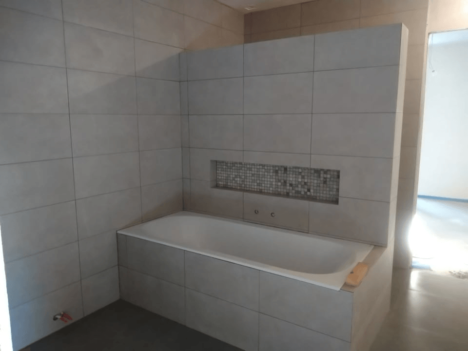 ButtonVoor deze nieuwbouw in Tielt voerden we als aannemer de vloerwerken uit , omvattend het betegelen van de volledige woning en 2 badkamers