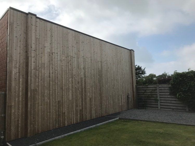 ButtonVoor deze verbouwing van een loods in meulebeke voerden we onder de aanneming schrijnwerk, de gevelbekleding in thermowood uit.