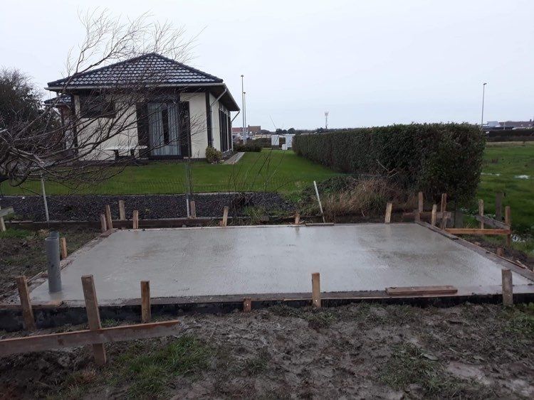gieten betonplaat tuinhuis Middelkerke
